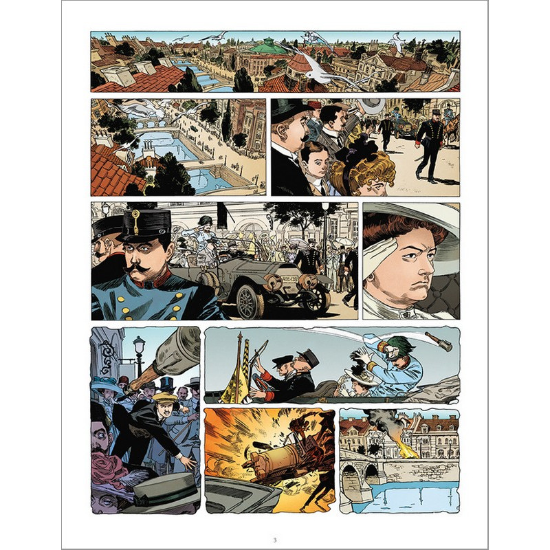 Una BD istorica del contengut dens, illustrada de dessenhs d'un realisme menimós que fan cabussar lo lector dins l'atmosfèra de l'epòca (imatge 2, l'atemptat, sens las botiòlas).