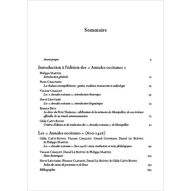 Lo Petit Thalamus, los "Annals occitans", constituís la version mai complèta de la mai anciana cronica urbana redigida dins una lenga vernaculara de l'Euròpa medievala, l'occitan lengadocian. Mai de 200 ans d'istòria de Montpelhièr a l'Edat Mejana i son contats : un testimoniatge excepcional.
