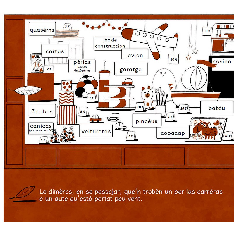 Per legir, per fulhetar e comentar amb los mainatges : un album que permet de descobrir los jorns de la setmana, lo material de classa, las colors, los nombres, los diferents luòcs de l'escòla… mas tanben los mots e lor grafia, lo raconte e la letra…