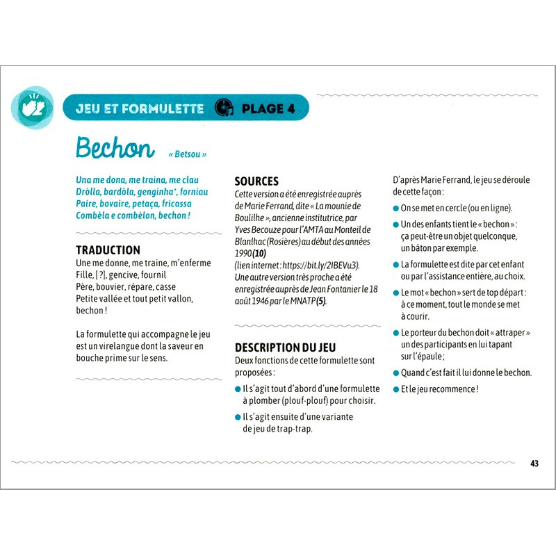 Un polit album pichon amb CD per aprene de comptinas, de jòcs cantats e de danças als mainatges de 6 a 12 ans. Una ressorça vertadièra pels parents e pels animators !