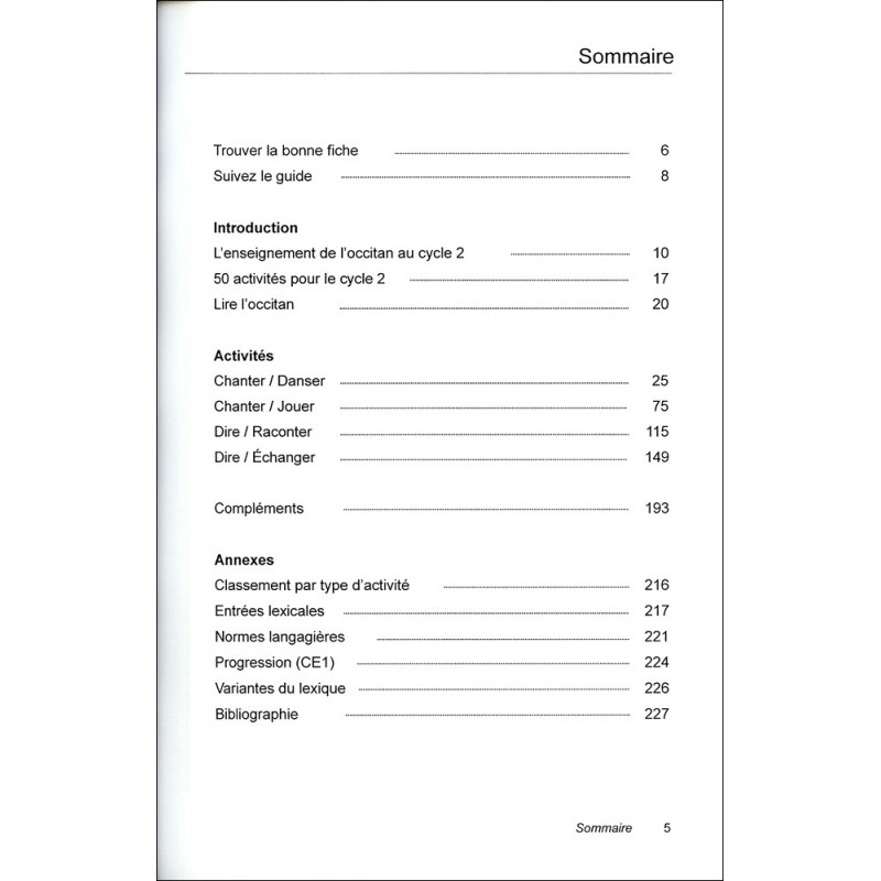 Caduna de las 50 fichas del libre es partejada en sequéncias e modulabla segon lo nivèl de la classa (GS/CP/CE1).