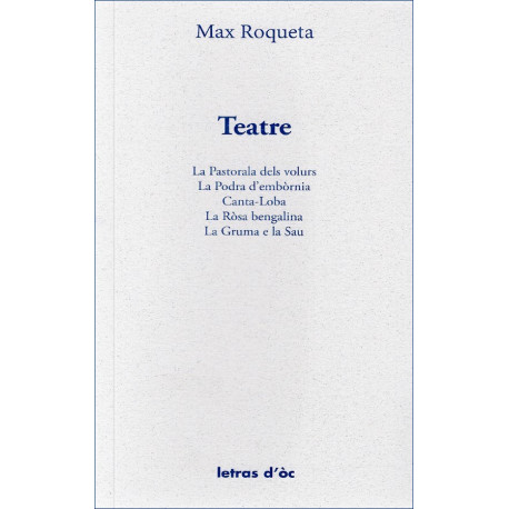 L’edicion d’aquestas cinc pèças de teatre de l’autor de Medelha (Médée) permetrà als amators de literatura occitana de legir una part essenciala de l’òbra de Max Roqueta.
