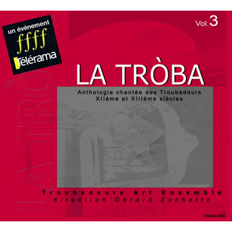 La grande Anthologie chantée La Tròba vous permet d'écouter toutes les chansons des troubadours dont les mélodies sont encore connues. L'interprétation de cette création originale du Troubadours Art Ensemble a été saluée par la critique : ffff de Télérama et Bravos de Trad Mag.