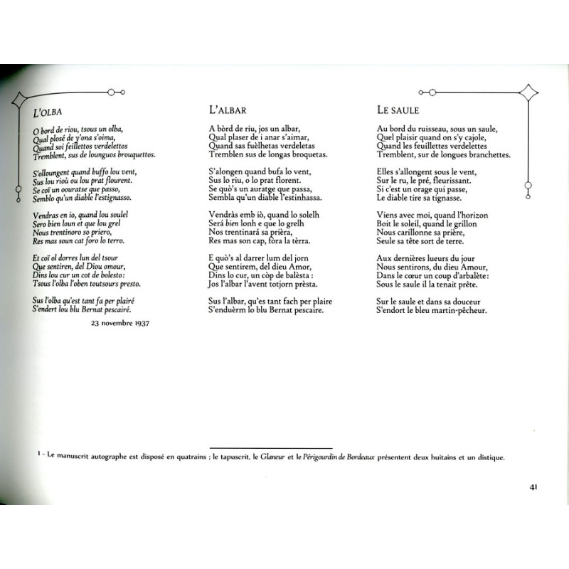 Bilingue : textes en occitan languedocien (présentés dans leur graphie patoisante d'origine et et leur transcription en graphie classique) avec traduction française.